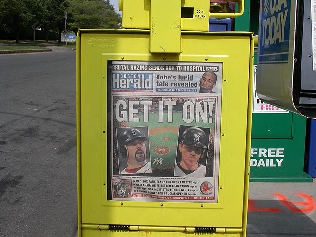 i was screaming and jumping so hard i almost passed out. "where's the matches?!" i shouted. "if the red sox win, i'll set my hair on fire and burn the house down!" i promised. kevin youkilis struck out. then johnny damon came to bat. johnny damon, who at the start of the game hit a homerun off of el duque, was the hero when he got a hit off of rivera to score cabrera. that still left the bottom of the inning, but closer keith foulke was able to dispatch the yankees for the save. for the second time this season the red sox were able to rough up rivera; he just may be mortal after all. it was an amazing game, and the one that seemed to be most important yet the one that the red sox was least likely to win, with the uneven pitching matchup between el duque (a perfect win record with the yankees this season) and charles "deathwish" bronson arroyo with his fabulous corn rows. el duque was mysteriously pulled from the game after the rain delay, while arroyo went on to pitch a few more innings. sure, he gave away 2 homeruns, but that's pretty good considering the offensive yankee powerhouse. even manny ramirez managed to pull an incredible "in the crowd" defensive catch to steal a homerun from miguel cairo. now the red sox are only 2.5 games behind the yankees. i hope there will be a few restless yankees fans tonight, tossing and turning in their sleep, thinking about this game as well as the next two games against the red sox.