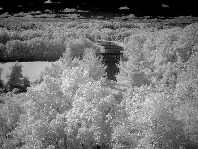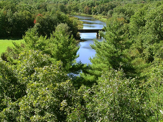 further up the trail i encountered three young people, spending a sunday afternoon hiking in the woods as well, the first people i've seen since i crossed the train tracks. they were lost and were trying to find the red trail. they left to go explore some more, and i told them about the snakes i saw. "yeah, we saw them too," one of them said. "he even touched it," the girl added regarding one of the boys. so that'd explain why the snakes moved! and i guess touching a snake isn't anything particularly difficult if these college-aged kids can do it. i left them, found the rocky narrows overlook (not particularly exciting, can't even see the river from this point), then started to head out back in a race against time to get back to the parking lot so i can ride home to catch the game. one thing i want to mention: there was absolutely no mosquitoes. the whole time i was there i only saw one mosquito, and only when i was standing right next to the river. maybe because it was windy, mosquitoes don't like that very much, or maybe it was the combination of jacket-jeans-bug spray.