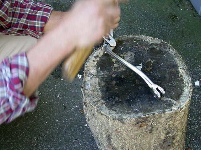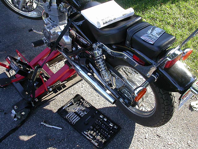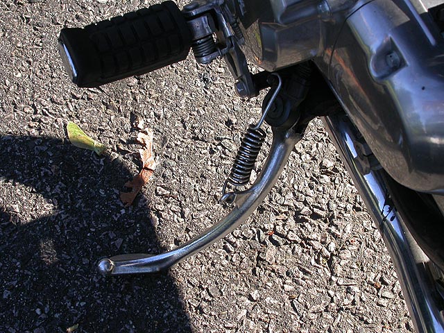 back in belmont, my father came home and i helped him take the kickstand off of the bike after we elevated the motorcycle with hydraulic jacks. with the back of an axe and a pair of pliers,
