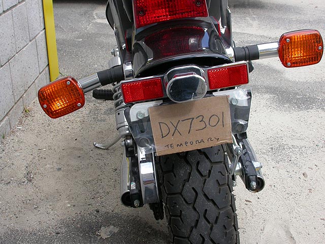 the bike still worked fine, despite the slightly misaligned handlebars. i couldn't very well ride around town without a license plate,