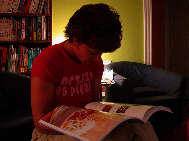 i invited julie over to watch the first game of the red sox yankees series in boston. she had her moscow sandwich while i ate my rice noodles, with ice cream drumsticks for dessert later in the evening. pedro was pitching, the game was close, but the red sox ended up losing, with any hopes of beating the yankees in the division race all but gone.