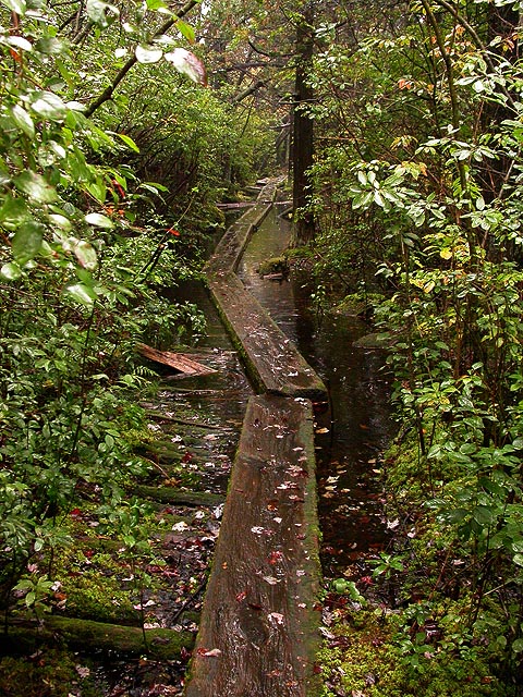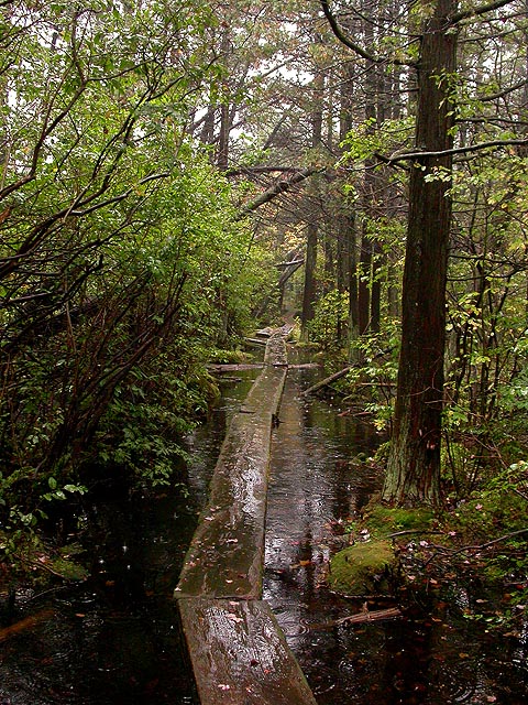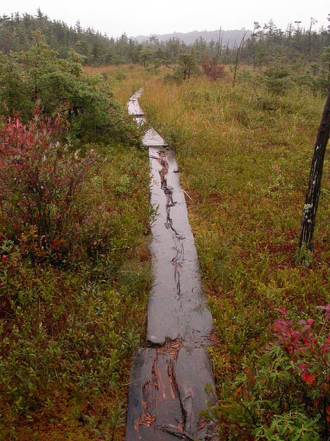 as rain continued to fall, i stood on the edge of the wooden plank and called people on my cellphone. i called renata to let her know of this great new bog that we haven't explored yet. i called my parents to let them know how beautiful the place was. and i called julie, who visited the bog back in the spring (when the boardwalk was flooded) to compare notes. i stood there for a few more minutes, soaking up the view, before walking back.