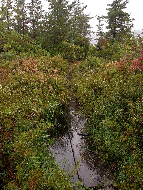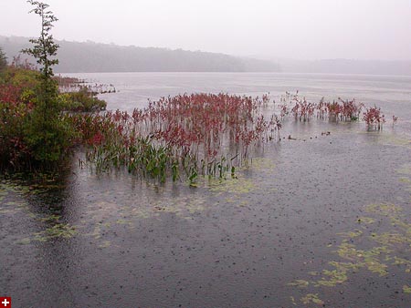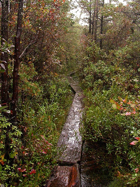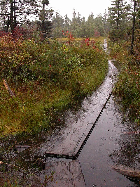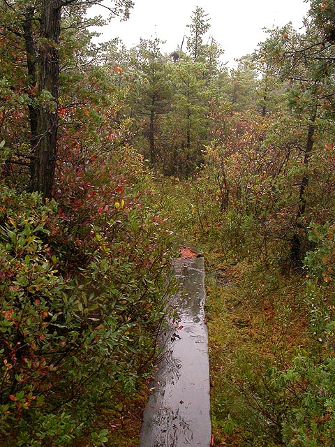 it was raining this morning, remnants of hurricane jeanne blowing her way up through the northeast. it was raining on a day that i picked to go out naturing, although a little moisture never stopped me before. unfortunately it was a lot of moisture, rain coming down so hard i almost couldn't hear myself think. looking outside into the backyard, i was debating whether to postpone my naturing for another day, perhaps go see a movie instead, because isn't that what you're supposed to do on rainy days anyway? still, once the rain looked like it was letting up, once i had my breakfast of a french bread pizza, i grabbed my gear and drove down to the blue hill reservations in milton/canton, and went to visit ponkapoag bog.