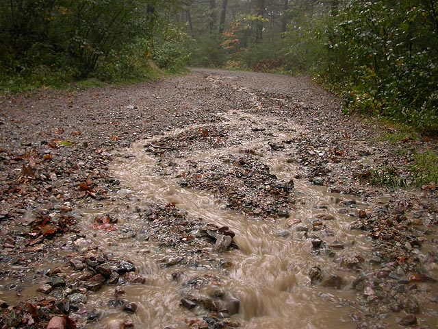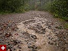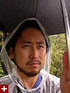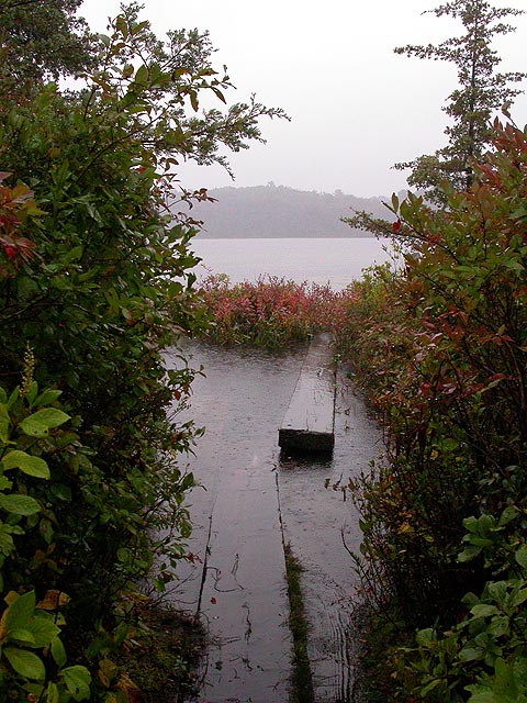 with the umbrella i pushed away some branches, also providing some cover so my digital camera wouldn't get wet. it was at this moment that the rain, which had been constant throughout, started to really pour.