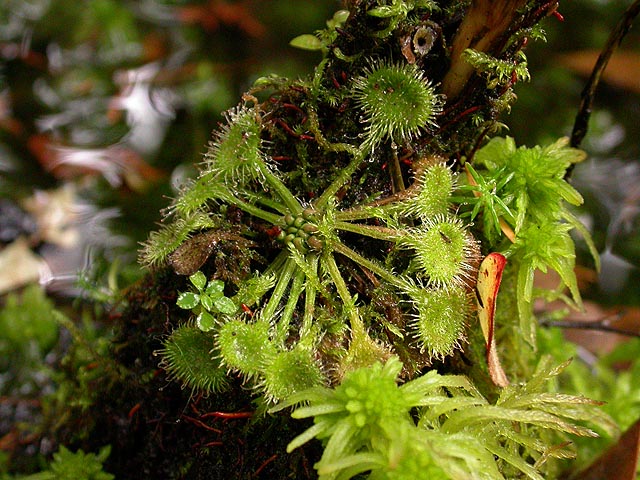 although i saw numerous pitcher plants, i still hadn't seem any sundews. i was starting to think that sundews were actually rarer than pitcher plants. almost towards the end of the boardwalk, while crounching down to take some photos, i suddenly saw the elusive sundew. looking around, i saw that they were everywhere, made easier to locate by their dried flower stalks. they seemed to be growing everywhere that sphagnum moss can grow, on tree trunks, on the wet forest floor, on the sides of the boardwalk even.