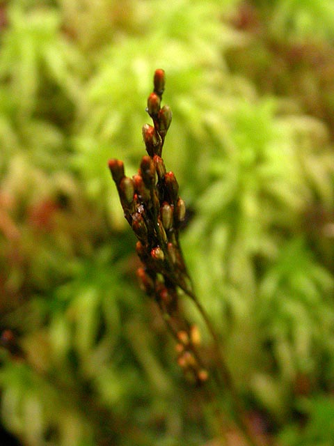 my legs sticking into the water, umbrella overhead, me leaning forward to get as close to the subjects as possible without falling into the bog. at that point i was totally soaked, my wet jeans tightening around my legs. everytime i took out my camera i had to first wipe the lens off with a dry corner of my t-shirt underneath the poncho since it was fogging up. the warm camera in this damp, cold environment (about 60 something degrees today) was actually giving off steam. another thing i noticed is that the sphagnum moss were becoming redder at this part of the bog.