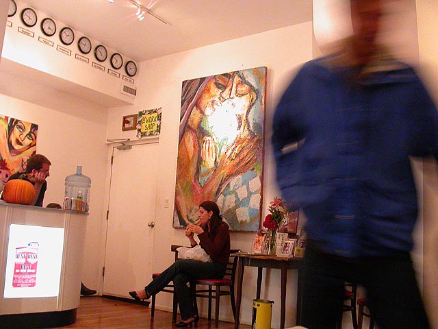 we saw a free improv show at PIT (including a sketch about pooping as a sport and a second troupe featuring a cute well-endowed redhead) then came back to brooklyn, retrieving his car in the process.