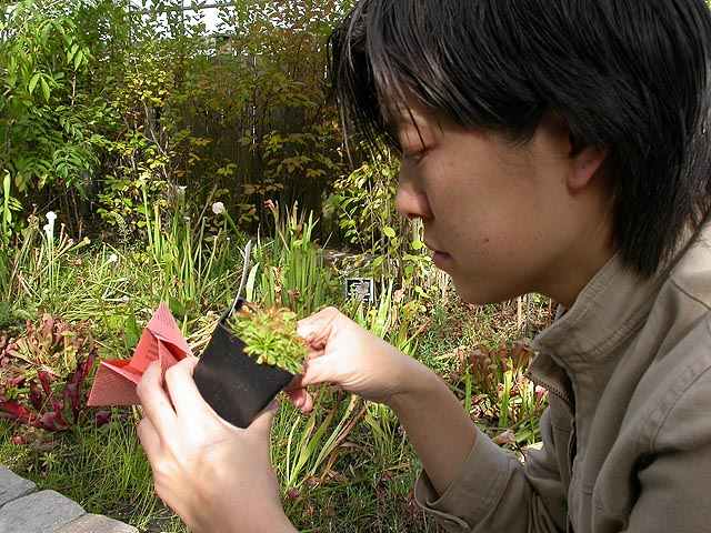 most of the specimens were for show, but there were also tables with plants for sale. i wasn't going to go home empty-handed and ended up buying a cobra lily (darlingtonia californica, which i'd later find out is one of the most difficult plants to take good care of) and a parrot pitcher plant (sarracenia psittacina, perhaps a hybrid). hsu wen couldn't resist either and she bought a cape sundew.