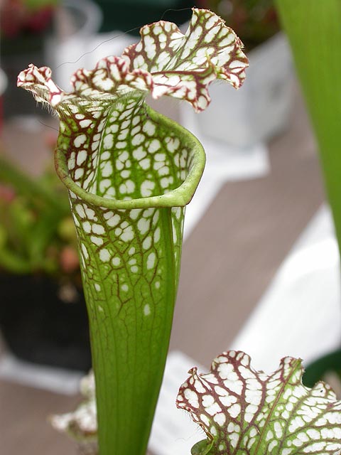 as well as a raffle for a free plant. the plant i picked was a tropical pitcher plant of very modest initial appeal, but upon a detailed examination would reveal pink digital "pixel" patterns on the inside lining of the pitchers. i'm not sure if this was intentional, but i liked it because it seemed very modern.