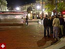 with nothing more to see, we walked down mass ave, back to my place. a streaker ran through the street and quickly put his clothes back on before the police arrived. dan and cymara walked back home, while julie came in for a little bit more live coverage of the celebration in kenmore square, where the riot police had already scattered the crowd.