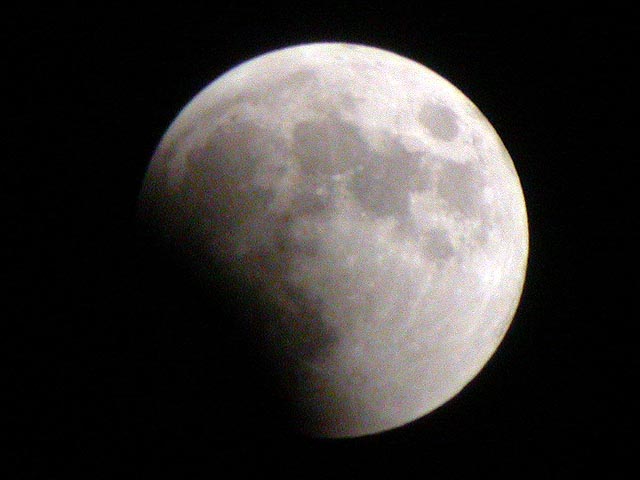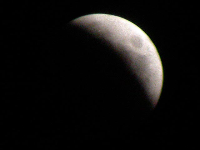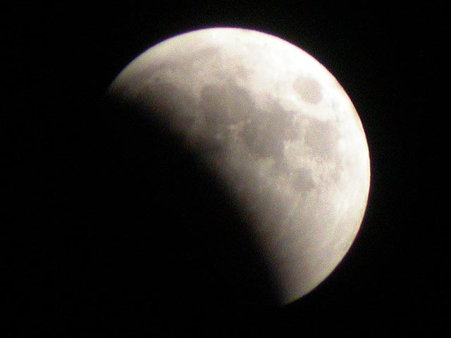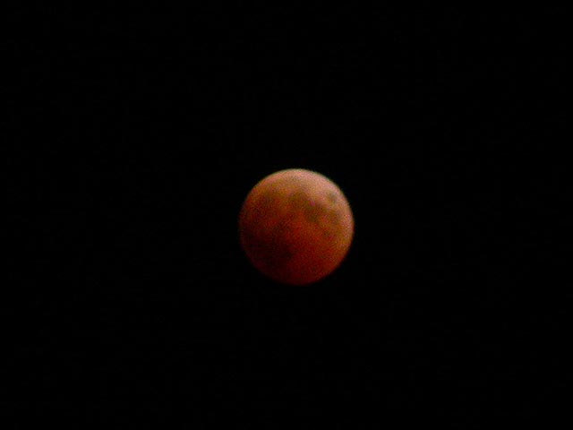 in between commercial breaks, i'd run into my backyard and set up the tripod with my digital camera to take some lunar eclipse snapshots. julie didn't seem too concerned about the celestial event that was happening outside, although she did periodically come out to look at it with a pair of binoculars (with the naked eye it didn't seem red, but with the scope it had a reddish hue). the eclipse was totally distracting me from the game, which, to be quite honest, almost seemed boring after the 3-0 lead, as the score grounded to a standstill, and with each inning, the red sox was hurling towards the inevitability of a world series victory.