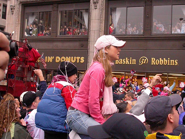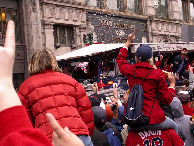 call me a hater, but i thought the historical red sox world series champion parade was only so-so, even though seeing all the players live one last time (before the baseball season is officially over, and and the integrity of the team is in question) was pretty cool, however brief the glimpses.