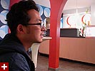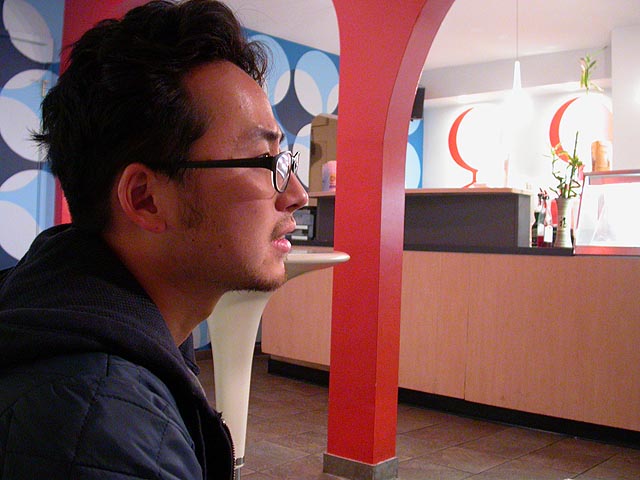 eventually we made it to lollicup. renata, wanting to pay me back for the burrito, bought a thai bubble ice tea for me while she herself went with a green tea slushy. we waited on the couch, taking ugly photos of one another. "i'm mad at you," renata said, "you made it so i can't erase any photos." this is true. renata threatened to smash the camera if i didn't deactivate the erase lock. i had to wrestle the camera back from her clutches. when our order was ready, we took a few sips, before heading back out.