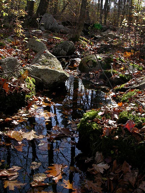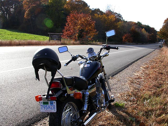 a single autumn day special of temperatures in the 60's meant that i'd be out riding the motorcycle. while eating a late breakfast i was looking over maps, seeing where i could go. i picked noon hill and the shattuck reservation, a trustees reservation 6 towns southwest of cambridge, about 20 miles away. i packed up my gear and left. cruising down small highways, with the warm sun on my face, and colored leaves swirling everywhere, the day could not be any better. if you dress warm enough, fall is the best time for riding in new england. the best routes are down long stretches of road where the trees form canopies and you're just going down corridors of colors, a kaleidoscope of orange and red and orange and green. i passed many other bikers along the way, all out enjoying the weekend weather like i was.