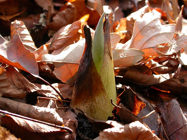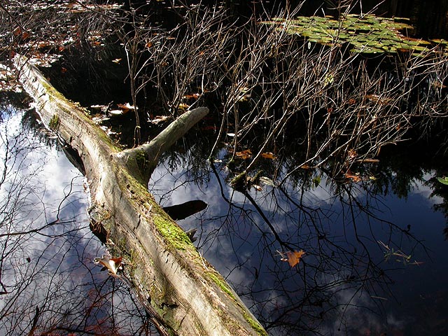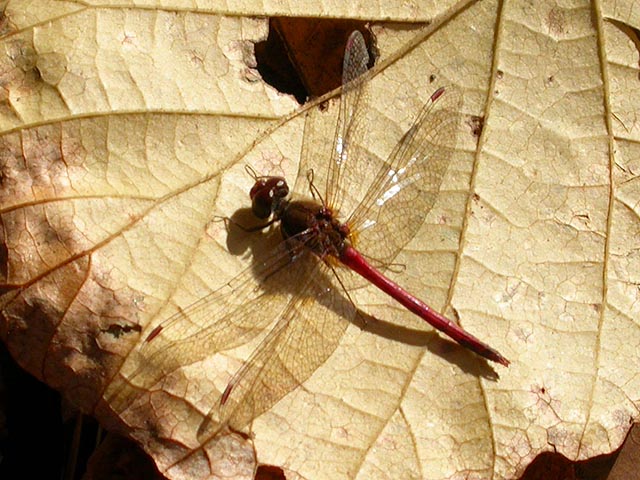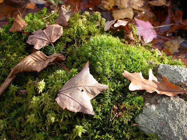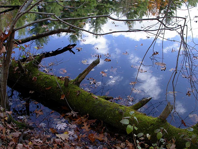 i walked around holt pond. at the end of the pond fed by a small brook, the ground was covered in sphagnum moss. conditions weren't right for a bog, but sphagnum moss is a good indicator species and i searched around for carnivorous plants, which there were none. the only thing interesting i saw was a dormant skunk cabbage poking out of the ground. this late in the season there are no mosquitoes; the only flying insects i saw were red meadowhawks, their days numbers.