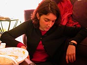 our original plan was to go see a short movie at the harvard film archives by someone renata knew from tufts. fearful she'd fall asleep in the theatre, we decided to stay home instead (the movie was a downer anyway, sunday nights are depressing enough). "i'm just going to take a short nap, wake me up in an hour," renata told me as we sat side by side on opposite ends of the couch. buried underneath a comforter, renata slept while i watched house of the flying daggers on dvd. it looks like a really good zhang yimou film, but unfortunately it's the chinese edition, with the english subtitles from an entirely different movie (i think pearl harbor). i watched about half but got so confused i decided to switch to regular tv. around 10:30pm renata woke up, and with eyes still half-asleep, put on her shoes and drove back home.