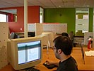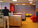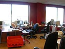this morning i went to the new SRM office down at one alewife square. it's a great space, 1000 square feet more than their old place, with plenty of windows. the smell of new carpet still strong in the air, and i met their new programmer amy. they were still in the process of moving in, setting up the machines, with stacks of moving bins up against the wall. i fixed some bugs for about 2 hours, then i left. i stopped by the cafe briefly (it was really busy, the noontime crowd), then came home, eating my leftover barbecue.