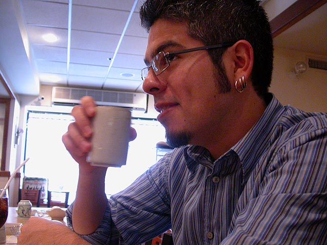 and i suggested we try shabuzen (020213 klea, 040225 julie, 040520 renata). it was pretty empty when got there, but filled up by the time we left. james and i both went with the chinese spicy hot pot (don't settle for anything less, chinese spicy will blow your mind). "you alright, dude?"
