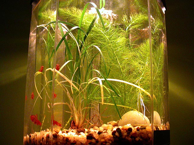 after the debris had settled, i got some fish photos with my newly-acquired plant. originally when i got the aquarium i wanted an aquatic garden more than i did a fish tank. now, a year later, it seems i finally got my wish!
