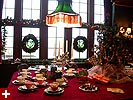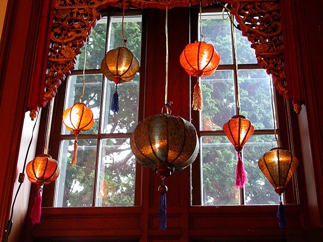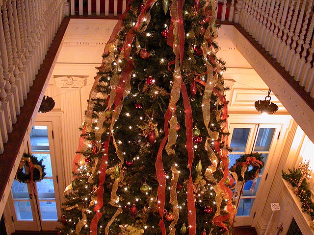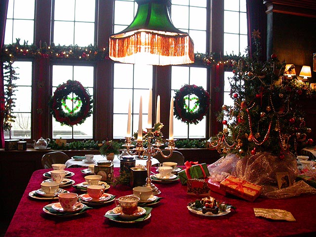 everyone piled into renata's parents' car. despite the fact that in hindsight it would've been more comfortable and safer for us to have taken 2 vehicles, i didn't mind that renata was crushed against me in the back of the car along with the two chinese teachers. a 30 minute drive brought us first to colt state park in bristol. since they've been in new england, the teachers have yet to see the atlantic ocean so this was a treat for them. unfortunately the weather was very raw, windy and rainy, and we got out for a few minutes to take a few photos then quickly ran back into the car. next we went to the blithewold mansion (bristol), in lieu of some of the more famous newport mansions, since it'd involve less walking around in the miserable outdoors. blithewold (sounded like "blight world") was all decorated up in christmas regalia, including the 18 feet tall artificial christmas tree greeting visitors as they came into the mansion. while renata was warming herself on one of the forced air vents, i tried to imagine how gigantic the furnace in the basement must be in order to heat up this mansion.