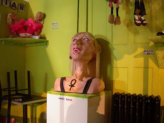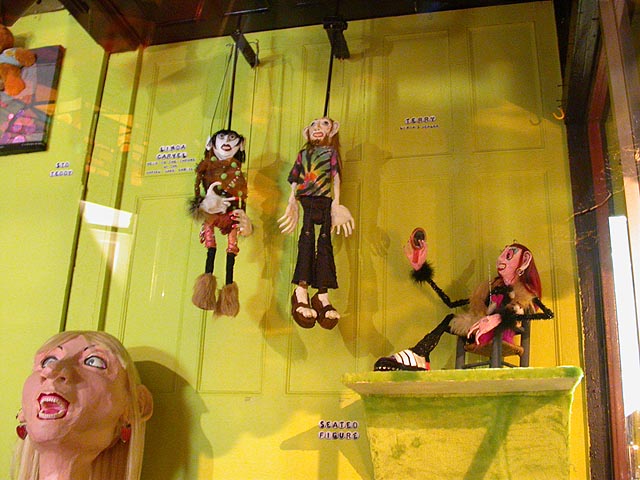 we returned to providence by nightfall, with renata riding on her father's lap in the front seat, much to the chagrine of her mother, who thought we'd be pulled over by the police for not wearing a seltbelt. we dropping off renata's father (who got out of the car with numb legs), before renata's mother took us back out again to give us a car tour of the city. i'd been given the tour before (in better weather, and during the daytime), so this was an encore presentation. we circled around downtown, through brown university, through federal hill, down thayer street (which for some reason was tranforming into what harvard square used to be before it was consumed by franchises). we stopped off at AS220, where marsian had his installation. unfortunately we got there too late and the place was closed, but i was still able to get some photos through the window, keeping my promise to marsian, and making sure renata would keep her limbs unbroken.