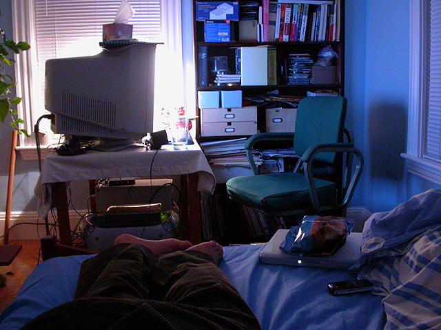 tonight i am writing from my bed, in my bedroom, after an exhausting 14 hours of continuous coding. i'm so fried right now that i'm shaking. i spent virtually the entire day confined to my bedroom in front of the computer.