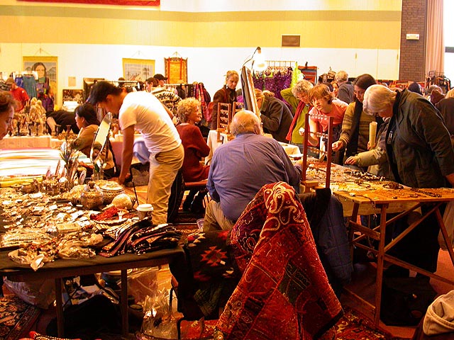 we came back to my place, parked the car, and walked to pound hall on the harvard campus for the annual cultural survival bazaar. the place was packed with vendors selling various indigenous people handicrafts. some of the stuff looked cool, but the feeling i got was everything was seriously marked-up in price, and there was no bargains to be had despite the 40% tax-deductibility because of the non-profit status of the organization. the floors were covered in oriental carpets, each one with a price tag in case you wanted to buy. i saw a really cool one but it was too pricey. outside the vendor hall people were selling ethnic food. we decided to get some late lunch at pho pasteur on the other side of harvard square. we wandered around a little bit more afterwards, visiting tealuxe and crate & barrel, before walking back home.