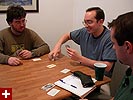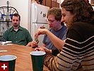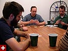 finally at around 5pm i had my first meal of the day, a small anchovy pizza i whipped up with some leftover ingredients. once i was properly fed, i went over to dan's place where he was hosting a game night. i was there more for the movie, which was a copy of re-animator from netflix that dan had received and wanted to get a big crowd to watch it together. elias was there, sporting a big beard, as well as mike, and 3 of his friends, kevin, john and kristine. they started a game that had a maximum of 6 players, i was happy to sit out, reading an artsy coffee table book, surfing the web. i'm not much for gaming, especially ones that involve a lot of complicated counting and strategizing and imported from germany. you have to really love the games to love that. something about it reeks of game nerd. i was growing increasingly bored and debated whether i should stick around for the zombies or just go home. when dan went to go pick up our wing works order, i went with him. i got the 6 piece gourmet, not particularly hungry after my anchovy pizza.