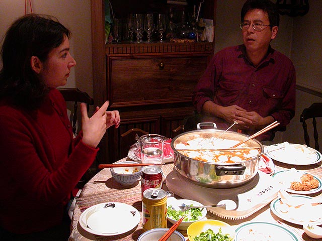already 3pm, renata was scheduled to go to a holiday party in brookline at 4pm. "i bet i can persuade you to not go to your party," i told her, half jokingly. "why, because you're going to invite me over to your parents for dinner?" she said, which was exactly what i was going to do, and she had already said yes before i even officially proposed the idea to her. "we're having hot pot tonight," i told her. so just like that a new plan was made up: renata couldn't get out of the party but would visit them briefly, while i couldn't go with her to the party because i had to go home and tell my parents to prepare for an extra dinner guest and to help my mother clean the house, but renata would come by my parents' place around 6pm. instead of dropping renata off, we then drove to trader joe's on arlington heights, where renata wanted to get some flowers (for both her party friends and for my parents). only then did i dropped her off and hurried home. "the girl who lives by the h. is coming over for dinner," i told my mother when i saw her.