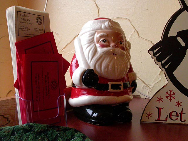we went to arlington where renata wanted to visit the monroe salt works, a store of potteries and kitschy items. before we could do that though, we were sucked into a few other stores, a stationary/craft supply store followed by a boutique gifts store. despite all the browsing, neither of us could find anything worth buying as christmas gifts. "we're not doing so well," renata said at one point. our holiday spirits dampened, we went to a pastry shop to drink some tea. we both ordered chai, although renata wanted soy milk in hers (oh la la!), as well as splitting a gingerman cookie.