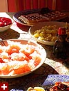 not only did renata bring her appetite, she also brought a bunch of questions concerning her trip to china next month, particularly what kinds of gifts to bring. my parents, who are slight experts on the subject through their many trips back to taipei and from the shared knowledge of their chinese friends, were more than happy to offer renata a list of gift ideas, suitable presents to give to people in china, things like cranberry raisins, scented pump-dispensed hand soaps, and omega-3 fish oil. my mother also showed her what to look for in buying jade bracelets.