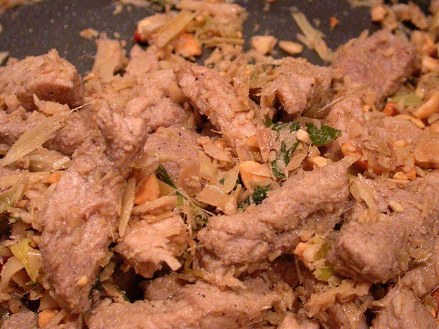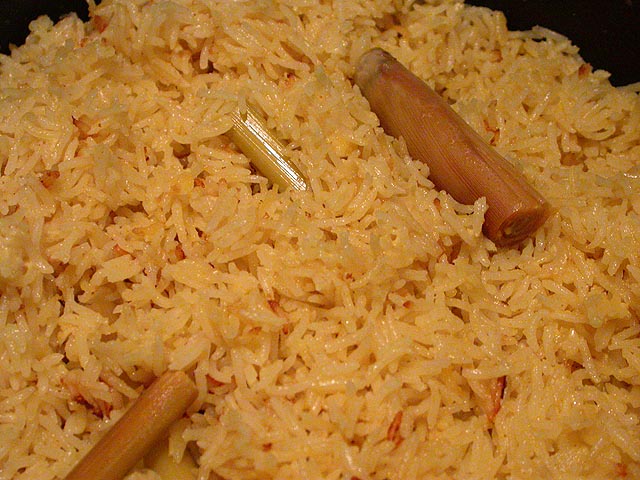 although it was julie's turn to cook, she had cut herself with a knife last night and wouldn't be able to do it, so i volunteered to cook again. the recipe was a thai lemon grass pork dish along with some basmati rice cooked in coconut milk.