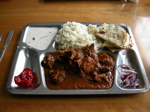 touted as the indian roadside cafe, punjabi dhaba offers a wide selection of food, including such relative exotics as mutton and goat. i ordered the goat vindaloo with a mango lassi. we ate upstairs with nobody else around, even cranking up the heat through the unprotected thermostat. the food was good but i was so stuffed that if i even thought about more indian food i'd burst at the seams.