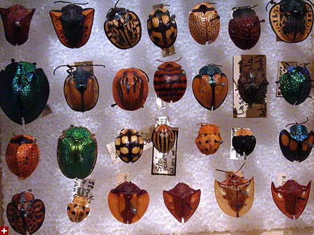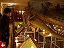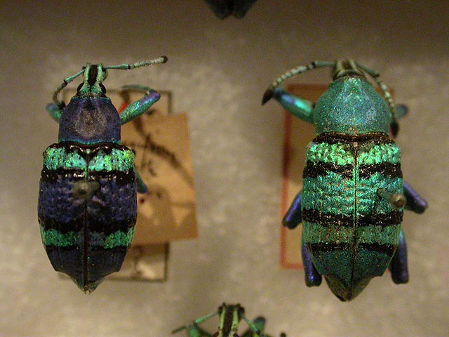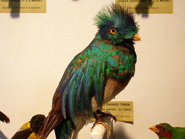 i live just a short walk away from the harvard natural history museum. on sunday mornings the museum is free (before 12pm) and it's on this day that i decided to take julie since she's never been there. the place was packed with small children and their shrieking can be heard throughout the museum. fortunately they have short attention spans and it's easy to outwait them before they run away to another exhibit room. the last time i came to the museum was july 2003; the special dinosaur eggs exhibit is now gone, replaced with a biogeology exhibit about the origins of earthly life. the collection of victorian tapeworms collected from high society people is now gone as well, replaced with one of the museum's beetle collections. the coelacanth is missing too, removed to have some cosmetic work done to it. i hadn't been to the museum since my costa rica trip, so it was interesting revisiting some of the animals i saw in the jungle, like the tamandua, the manakins, and the quetzal (although i didn't actually see a quetzal).