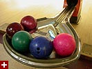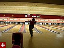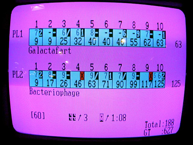 with candlepin it's 3 turns with uniform balls the size of a large orange. the pins you knock down don't clear until the end of your turn, so you can use them to topple the remaining pins. this is useful because it's very hard to get strikes in candlepin. my result? the losing streak continues! i bowl angry and fast, and with these little balls it felt like amusement park skee ball except i don't win any prizes.