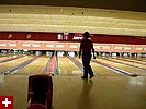 little did i know but the lane that we got (42) is notorious for breaking down. for the first few frames the "sweeper" mechanism for clearing the pins would get stuck and we'd have to call the maintenance guy to come down and fix it for us. julie got a pair of 10 lbs.