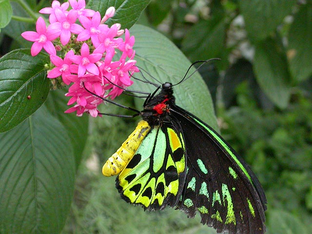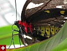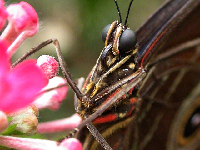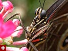 although from what i've seen thus far, it looked promising. before you actually saw the butterflies you first had to go into an education room, where displays informed you about the differences between a moth and a butterfly, the parts of a butterfly, and how they survive. they had a display where live morpho caterpillars were feeding, and another display featuring twig insects from around the world. lengthwise twig insects must be the longest bugs in the world (i swear, there was one a foot long), and it was kind of gross watching them breathe, their abdomens slowly pulsating like balloons.
