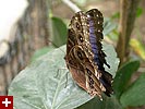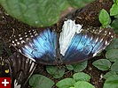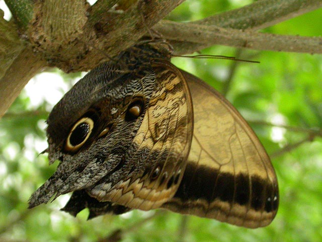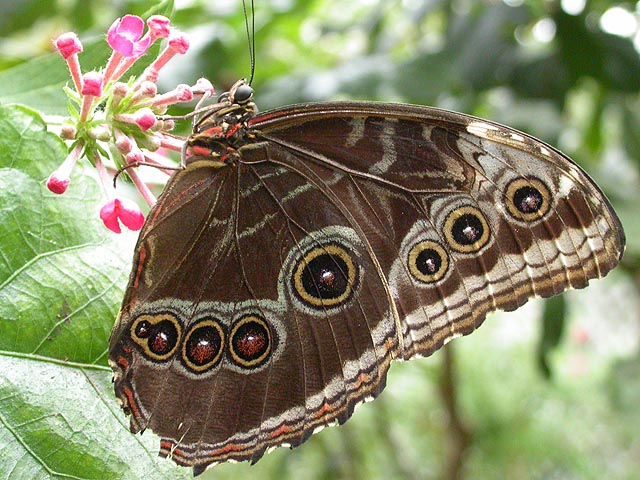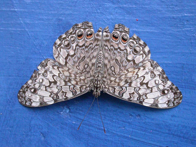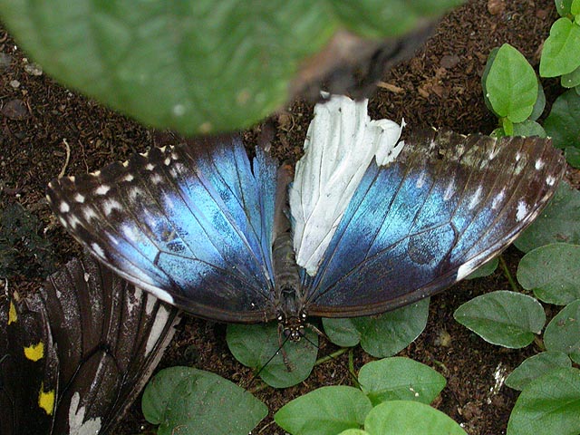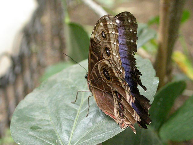 her fridge full of dormant cocoons. she said the blue morphos are the most popular butterflies but they're hard to raise because their caterpillars have stinging hairs. blue morphos were definitely very common, although whenever they came to rest they'd close their characteristic iridescent blue wings to reveal several false eyespots.
