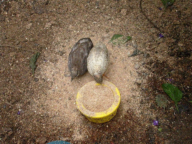 there were other animals too: chinese button quails ran around the ground, oblivious to the foot traffic of the visitors, pecking at bird feed from this feeding fish.