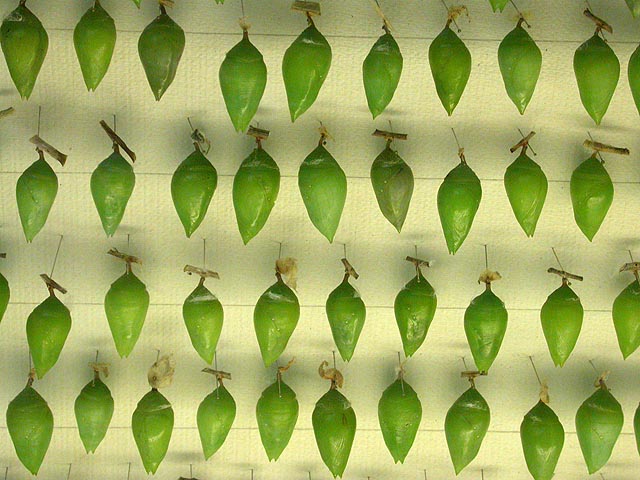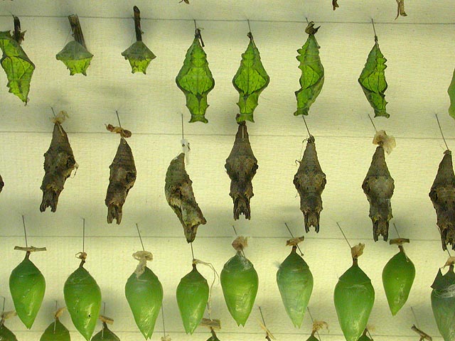 before leaving, i found the butterfly nursery with its collection of chrysalis of all shapes and sizes: