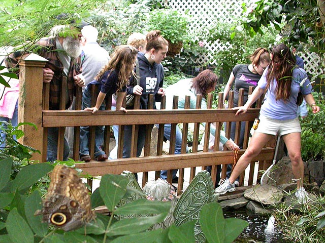 throughout the grounds helpful and knowledgeable staff members were available to answer any butterfly related questions. one of the girls, denise, told us about how she was currently raising some polyphemus moths in her house,