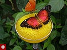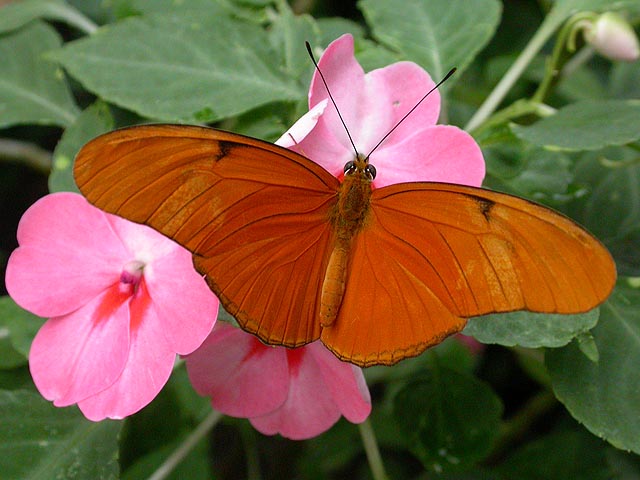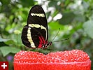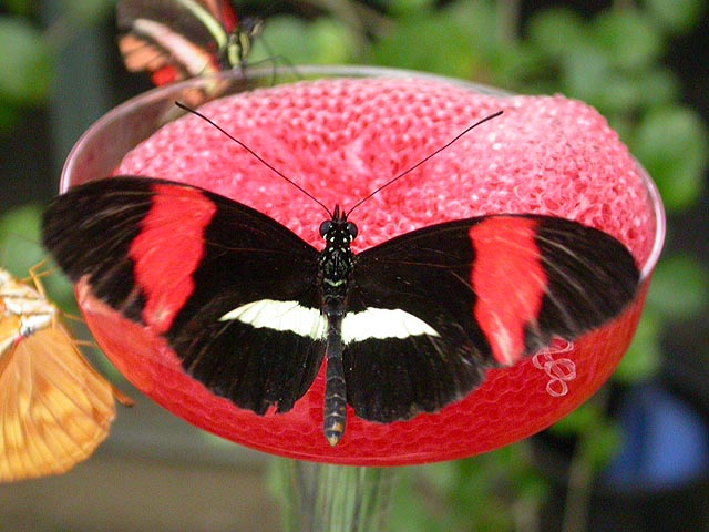 we then went into a short hallway with mirrored walls and warm air blowing towards the conservatory. all these were countermeasures to guard against any butterflies from escaping or hitchhiking on an unsuspecting visitor (as if they'd survive in the harsh new england winter!). once we stepped through the hallway, beyond the swinging doors, we immediately felt like being in a humid jungle. and almost like on cue, butterflies started fluttering about everywhere, so many in fact that i was afraid i'd accidently step on them.