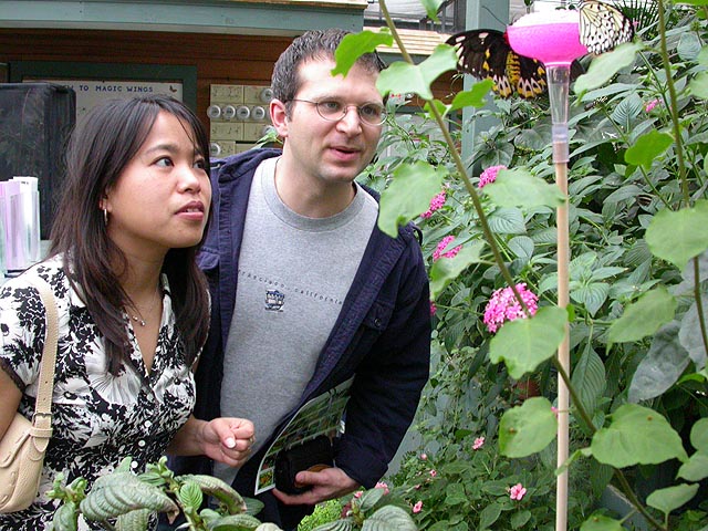 my sister approached me about the trip earlier in the week. she and her friend carmine were going to the butterfly conservatory this weekend and asked if i'd be interested (and if i knew anybody else who would be too). now normally the chance of my sister and i hanging out would be next to zero: peace in the middle east and the reunification of the two koreas would sooner happen that the yang siblings spending a day bonding. but the opportunity to see butterflies was too great to turn down so i agreed to go.