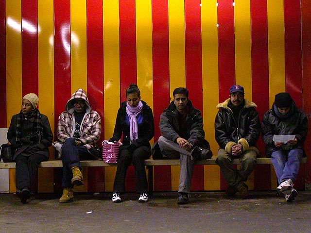 i quickly got dressed and stumbled into the early darkness. the streets were mostly empty. i saw the boston globe van stopping to deliver the newspaper. i phoned renata's mother with their morning wake-up call. when i got to the station there was nobody at the token booth, so i just walked right in without paying and down the escalator. the platform was empty except for a man sleeping on one of the benches. i caught the red line to park street, then rode the green one stop north to government center to take the blue line to logan airport. a lot of people there seemed like they were going to the airport as well (why else would they be up this early on a sunday?). there was something wrong with the blue line because even though i could hear ghost trains coming into the station, i waited 25 minutes before an actual train showed up. once we got to the airport stop, it was another 5 minute shuttle bus ride to terminal C, and then i had to find the united ticket counter.