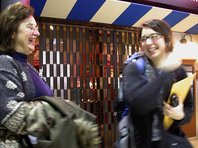the three of us went to the starbucks (formerly seattle's best) in kendall square after the movie to get something warm to drink. i went with my usual poison, venti chai latte. eliza disclaimed that she and jerica were out late partying last night so they didn't have their best face on. jerica showed me the homemade lip balm she'd made. we spent the time further talking about the documentary we just saw before heading to the T in our separate directions. observation: when i see fuzzy pink boots on the subway, i have no choice but to take a photo.