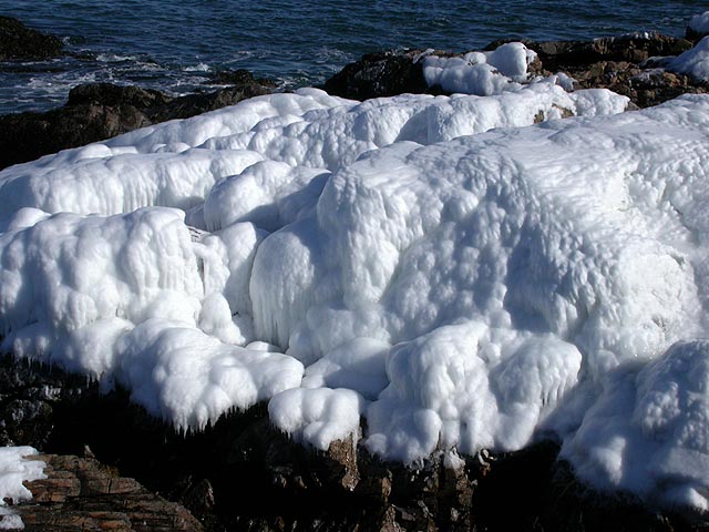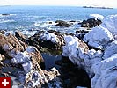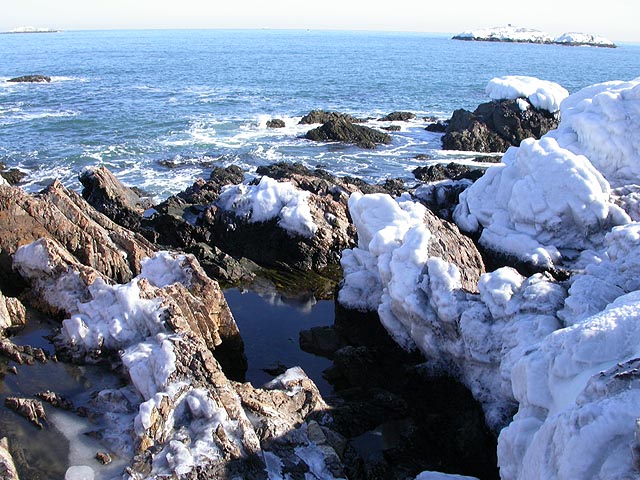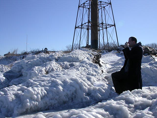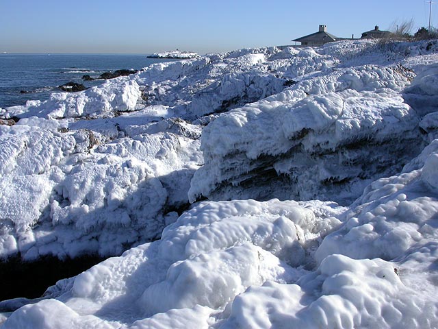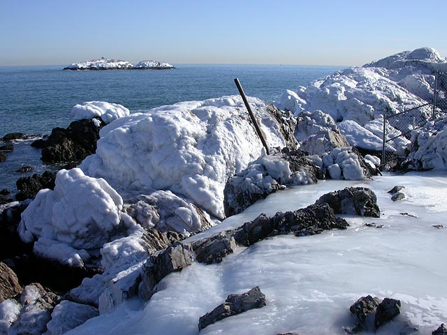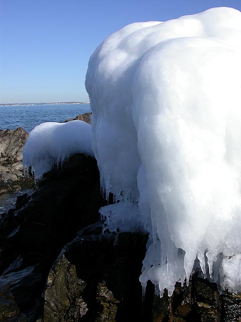 bruce called me up this morning asking if i was free to do some naturing. we didn't know where we were going to go except it'd be north and by the beach. so we got into his car and drove until we arrived at marblehead neck. a lighthouse overlooking rocky cliffs awaited us. the jagged rocks by themselves would be dangerous, but they were also coated in a layer of ice. one false step and you could slide into the ocean, your body sliced open from the sharp rocks as you tumble downwards to your death. so naturally bruce and i had to investigate, make sure it was really as dangerous as it looked. we climbed down using our innate mountaineering skills, wedged between large boulders as we shimmy down the icy rocks.