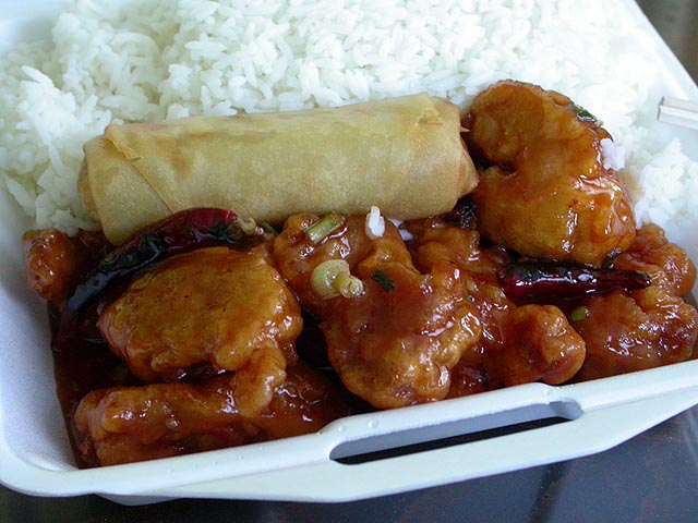 the drive home took an hour through congested traffic because we decided to try a shorter route that cut through swampscott and lynn instead of back out to the major highway. once we got back i immediately went across the street to get some chinese takeout from zoe's. it was a few minutes past their lunchtime but they let me get the lunch special anyway. i came home with general gao's chicken and ate it while watching the movie dune on television.