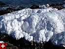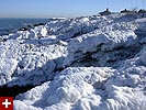 there wasn't much wildlife to see other than seaweed and the occasional mussel or broken crab parts. there were some small tidal pools but most of them were coated in a layer of ice. we climbed back up and went to the opposite side of the lighthouse. there we were able to spot some interesting ocean birds bobbing on the water surface; we weren't able to identify any of them. bruce even ate some of the snow to test if it tasted salty (yes it did).
