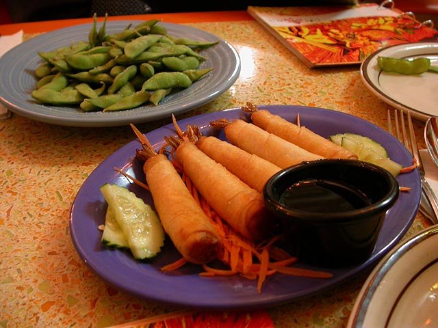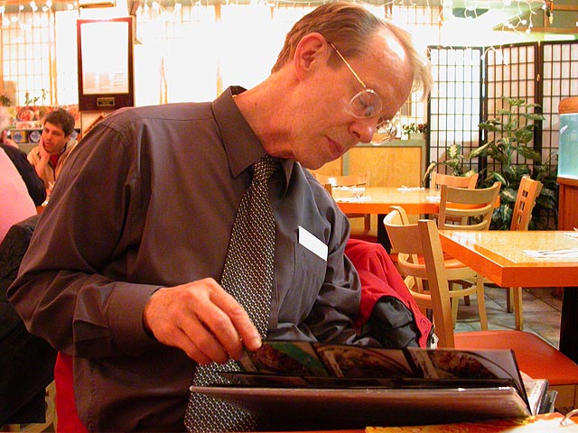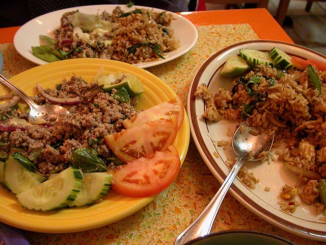 we drove out to the thai restaurant doc bua in coolidge corner; apparently we beat the crowd because we were the first customers. the place might not be fancy but the service is friendly and the food is excellent, fresh ingredients with an attention to detail that's surprising for a restaurant so inexpensive. looking through the menu, dave was pointing out all the dishes that were authentic thai cuisine (as opposed to bastardized american thai). while waiting for our food (which arrived quickly), dave shared some thai brochures and maps and books with me from his travels. after dinner i got a ride back to cambridge.