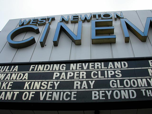 after a split second of hesitation i said yes and quickly got dressed and out the door. jack had the day off because there was some water main issue at his work place (something about a flood). we drove out to the west newton cinema (in under 20 minutes), the only place in town that was still playing kinsey. i'd never been there,